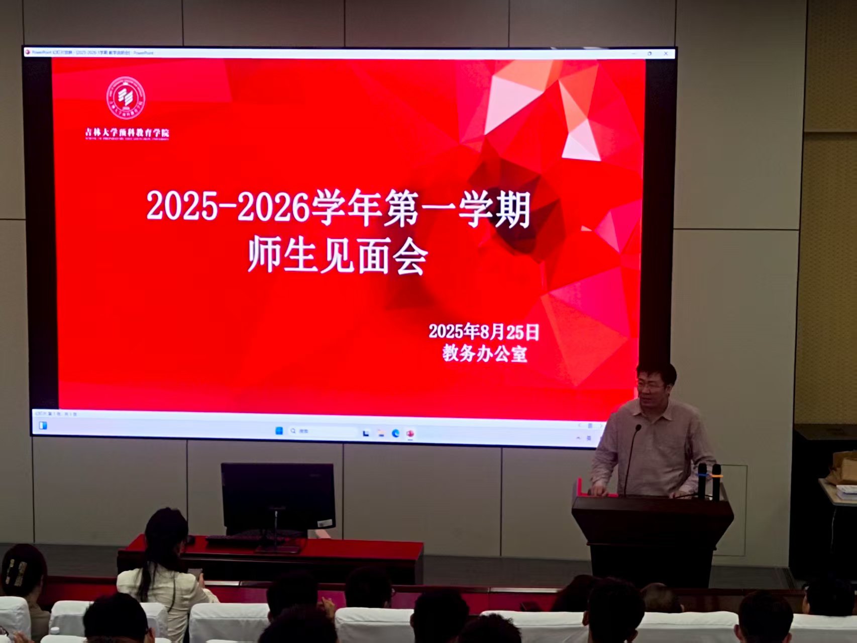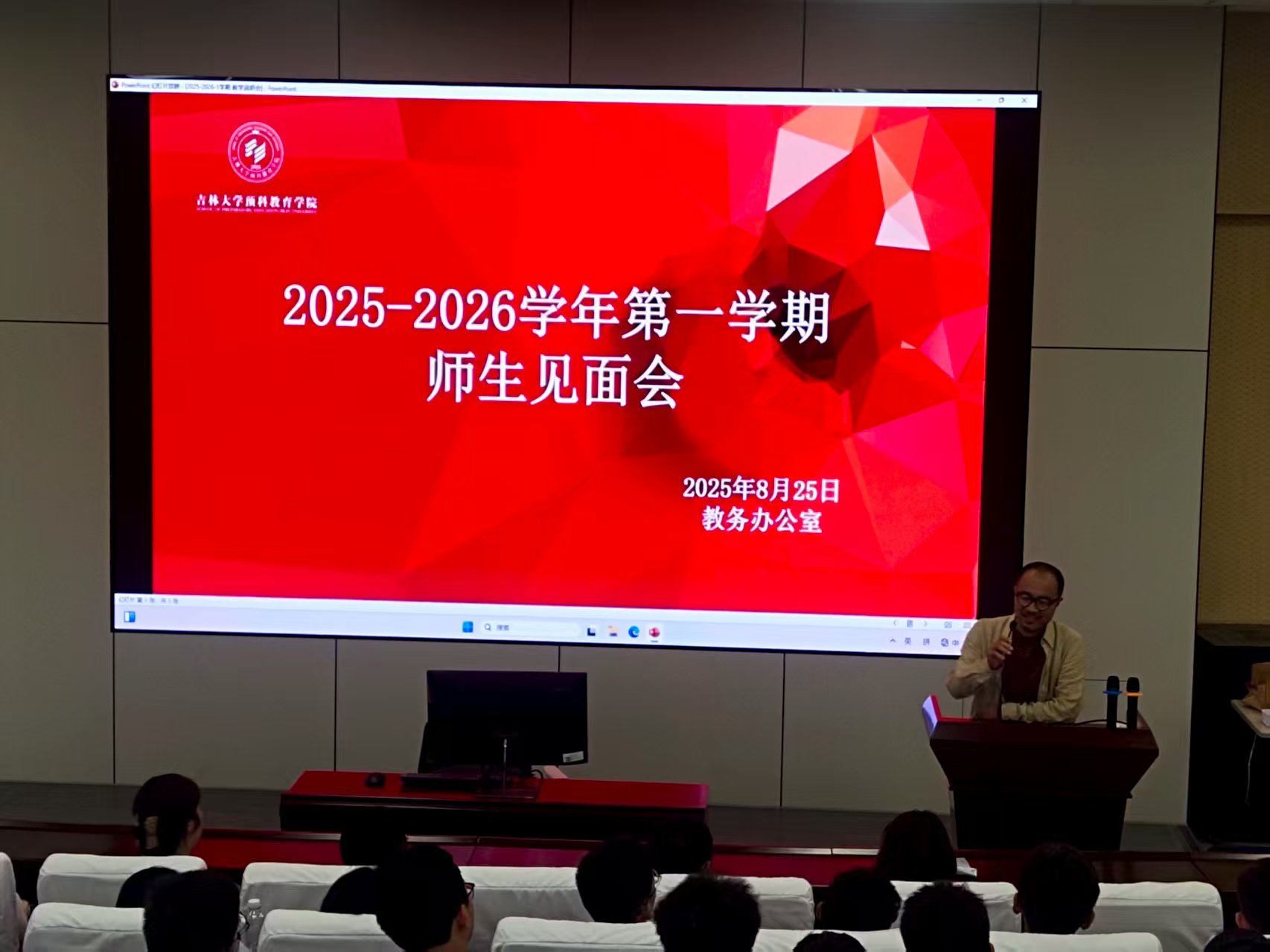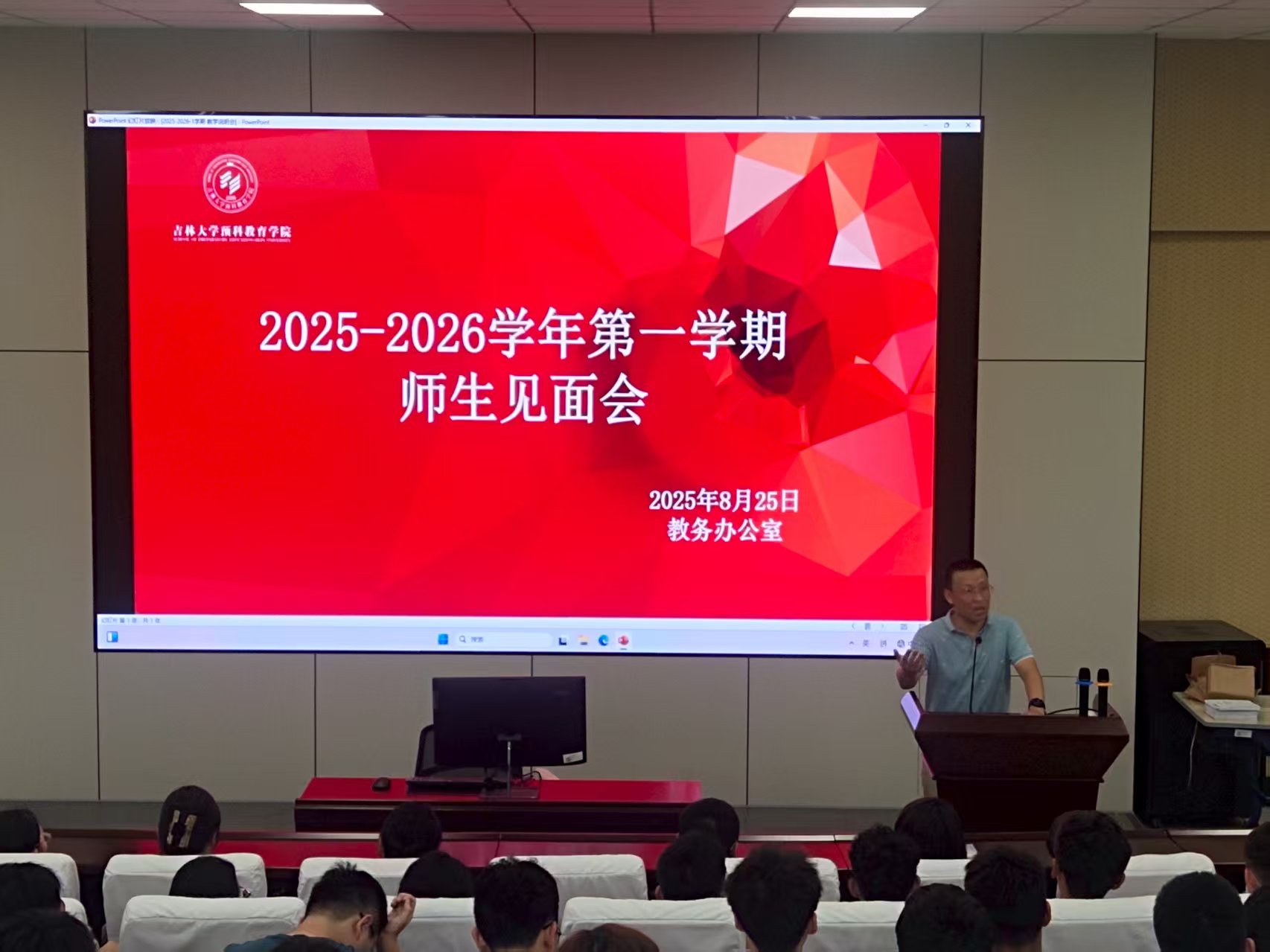2025年8月25日下午,在201多媒体教室召开“2025-2026学年第一学期师生见面会”。会议由公司教学副经理赵娜主持,各预科教学研究室主任、部分任课教师、各班班主任、2025级预科新生参加。