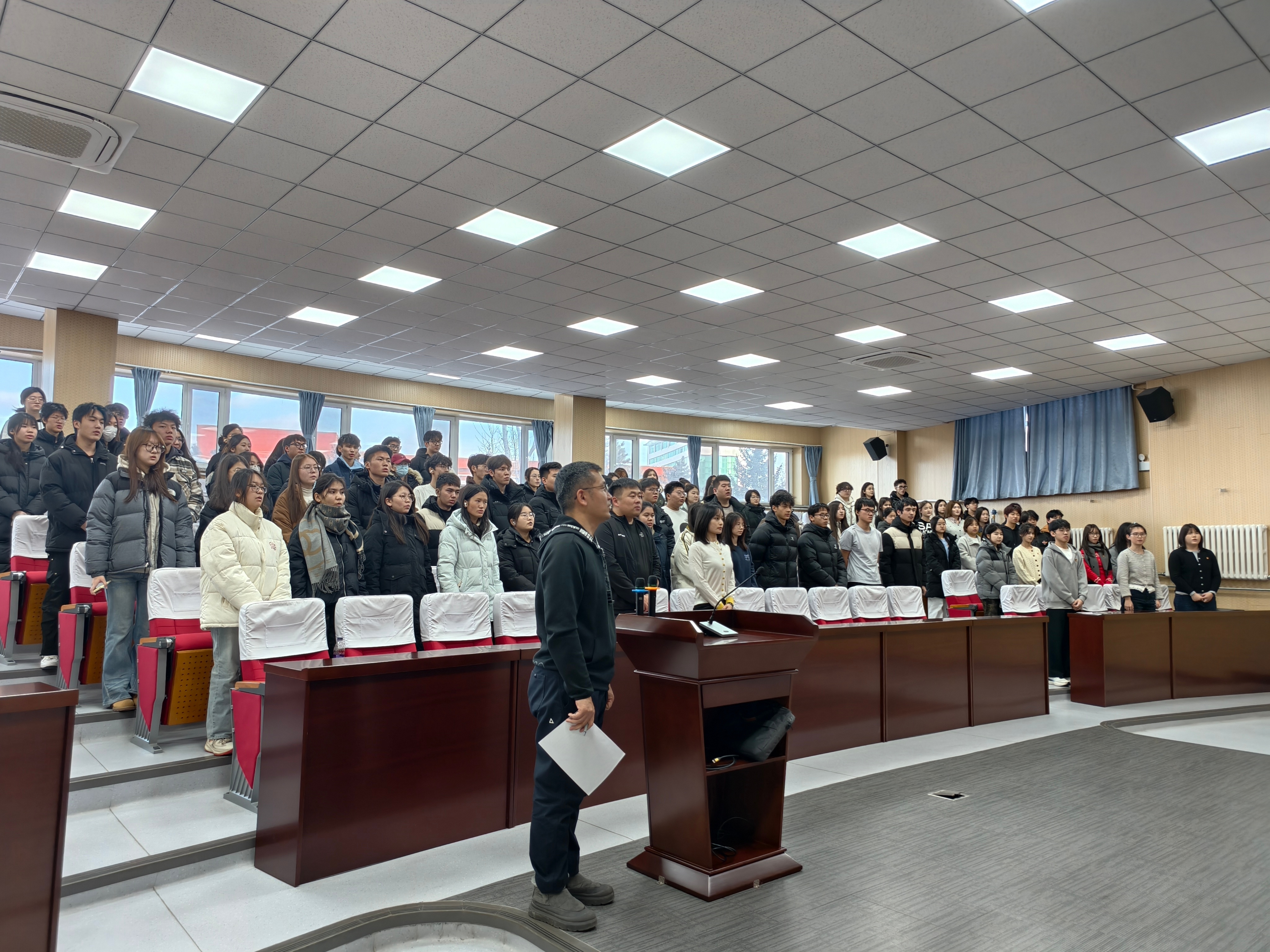 12月31日下午,2025级新团员入团仪式在南湖校区二教201报告厅举行。公司党委副书记田轲、学工办主任孙祺媛及全体团员齐聚,共同见证21名新团员加入中国共产主义青年团,仪式由公司团委书记哈那提主持。