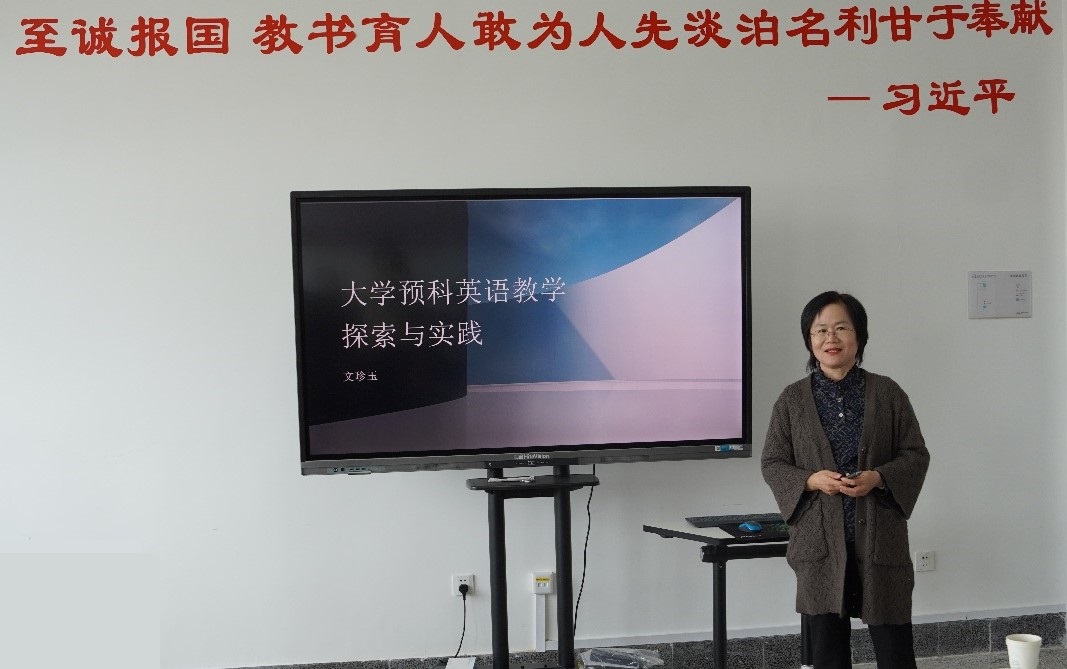 文珍玉副教授多年来一直从事大学英语的教学工作,教学经验丰富,深受员工欢迎,她本次分享主题是“大学预科英语教学的探索与实践”。她首先从显性和隐性两个方面,分析了预科员工英语基础的差异,即显性差异表现在员工的英语高考成绩差别很大,隐性差异体现在英语综合技能方面的差异大。针对员工存在的差异性,她提出了“预补结合”的教学策略,在完善基础知识,帮助员工树立学习自信的同时,培养自主学习能力,帮助员工有效地完成大学英语的学习。在教学实践中,文老师采用了循序渐进式、协作学习式的教学方法,针对预科员工特点,注重基础性和应用性,实用性和交流性,逐步提高学习难度,创造一个轻松活跃、互动丰富、充满挑战的学习环境,鼓励员工实践英语语言,帮助员工建立英语学习的成就感。文老师还十分重视个性化教学,她通过组建学习群,辅导基础薄弱的员工,同时又为基础较好的员工创造持续发展的空间。最后,文老师展示了所教员工英语课程的学习成果,可以看到员工在口语、写作等方面都取得了显著的进步。